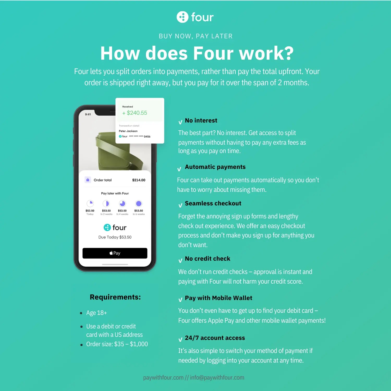 Enjoy Now, Pay Later in Four